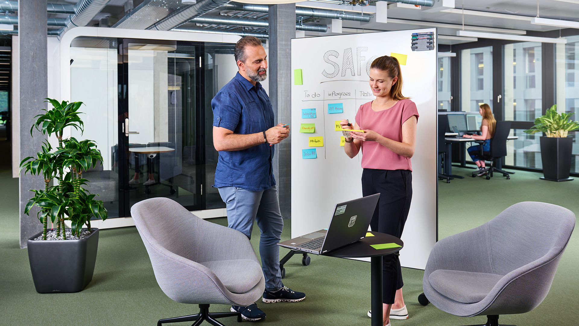 Wir arbeiten in interdisziplinären Teams. An welchem Ort die jeweiligen Lösungen erarbeitet werden, das entscheidet jeder für sich in Abstimmung mit dem Team. So stehen unseren Mitarbeitenden in Zollikofen nebst normalen Arbeitsplätzen auch Projektzonen, Kreativräume und Rückzugsorte zur Verfügung. In unserer Cafeteria kommen Kaffee-Liebhaber auf ihre Kosten und in unseren Personalrestaurants findet sich für jeden Geschmack und jede Ernährungsform eine schmackhafte Mahlzeit.