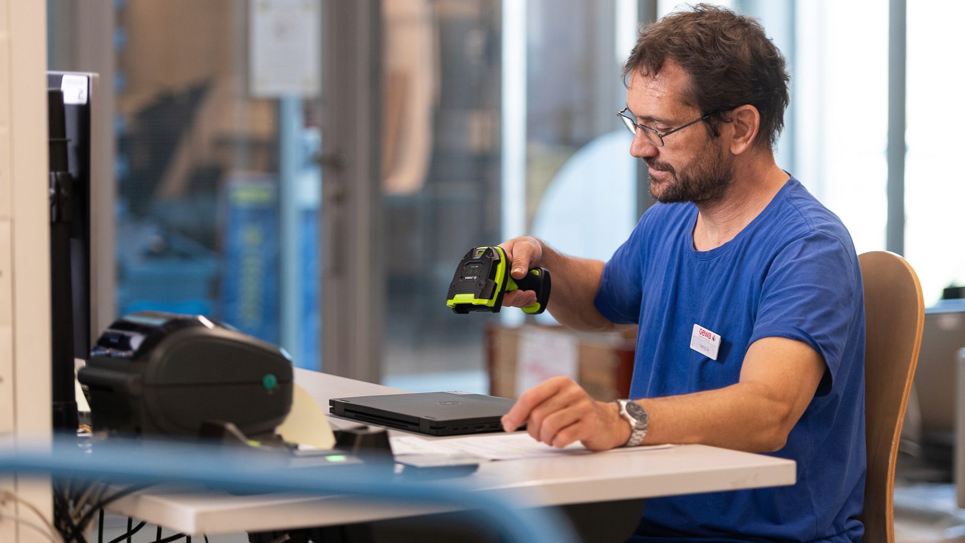 Die Arbeitsumgebung im Gebäude der GEWA in Schönbühl ist hell, freundlich und in unterschiedliche Arbeitszonen aufgeteilt. Die Zone, in welcher die Altgeräte bearbeitet werden, ist nur mit Code zugänglich, kameraüberwacht und lediglich für eine Handvoll Personen zugänglich. «Alle Personen, die hier arbeiten, müssen bestimmte Sicherheitsvorkehrungen einhalten und eine Sicherheitsprüfung durchlaufen», erklärt Markus Bolt, Teamleader Multimedia. Sämtliche Arbeitsschritte der Rücknahme werden sukzessive abgearbeitet: Zunächst wird eine Bestandsaufnahme der Geräte durchgeführt. Anschliessend folgt die Aufbereitung: Das Gerät wird bei Bedarf repariert, aufgerüstet und gereinigt. Am Schluss wird das Gerät neu lizenziert. Danach ist es bereit für den letzten Schritt: Mit der Aufnahme in den Online-Shop der GEWA gelangt es in den Verkauf und der Recyclingprozess der Bundesverwaltung ist abgeschlossen. Jeder Schritt geschieht in einem Vieraugenprinzip, beim Löschen der Daten sogar in einem Sechsaugenprinzip.