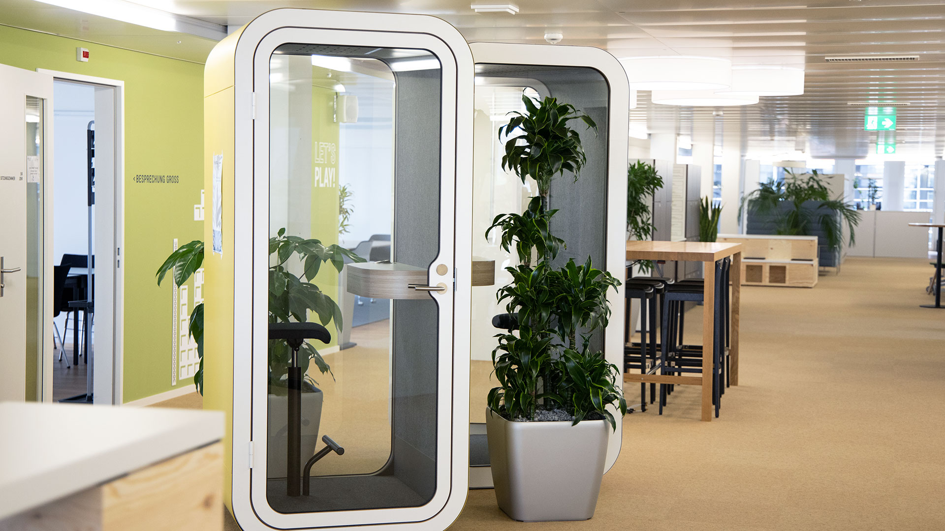 Die Transformation des BIT benötigt Raum zur Entfaltung: Mit einer neuen Arbeitsumgebung schafft das BIT beste räumliche Voraussetzungen zur Erreichung der Ziele von «Midar». Einzelbüros hat das BIT schon länger abgeschafft. Nun ist es daran, in seinem Gebäude in Zollikofen und in dem gegenüber entstehenden Neubau Raum für neue Arbeitsformen zu gestalten. Hier wird eine engere Zusammenarbeit in interdisziplinären Teams und mit Kolleginnen und Kollegen aus anderen Ämtern und Departementen möglich. Die zeitgemäss ausgestatteten Arbeitsflächen und Projekträume unterstützen das agile und kollaborative Arbeiten optimal.