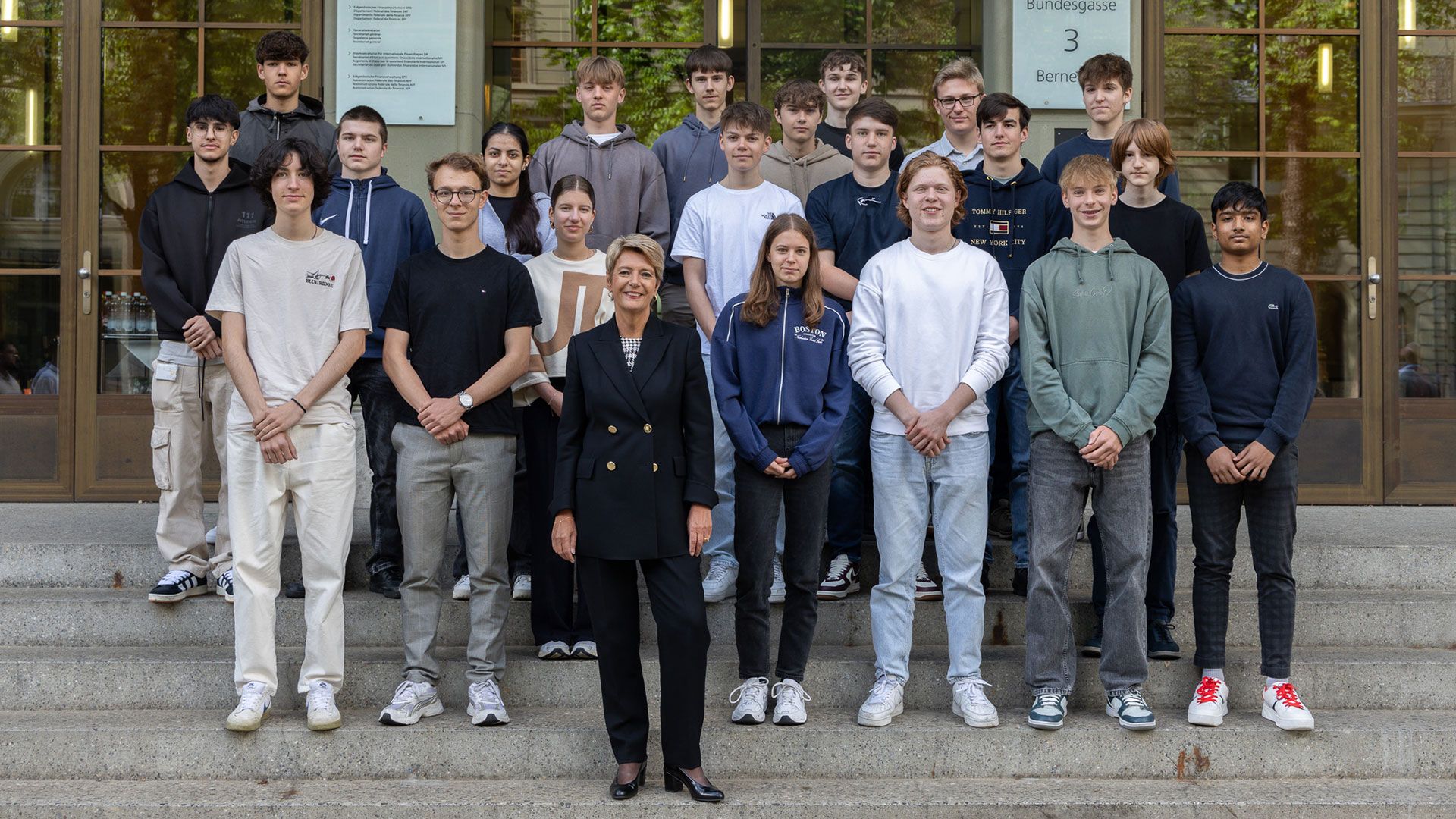 Quelle belle expérience pour nos apprentis! Le 25 mai 2023, la conseillère fédérale Karin Keller-Sutter les a accueillis au Bernerhof pour répondre à leurs questions. Une occasion en or de découvrir son travail sous un angle personnel.